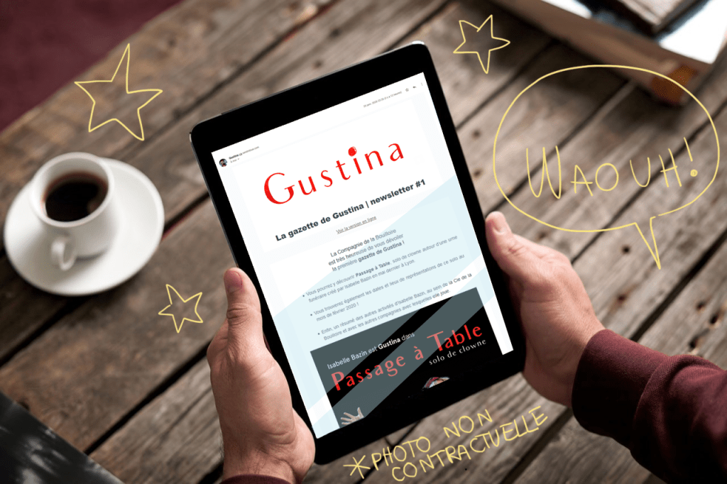 Après 20 numéros, la Gazette de Gustina tire sa révérence pour laisser la place à une nouvelle newsletter : le Chant de la Bouilloire ! Une toute nouvelle lettre d’information consacrée à la Compagnie de la Bouilloire et tous ses projets : Passage à Table avec Gustina, le BD-concert Petit Poilu, Isabelle Bazin en bal et Regarde le soleil comme il est beau.
