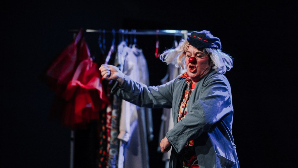 L’espace que propose le clown permet de parler de la violence que la comédienne a vécue d’une manière très juste, très courageuse, il offre la possibilité d’explorer les paradoxes de ces sensations difficiles. Nous public, on n’est jamais pris en otage face à cette histoire, les choses sont suggérées, on les devine et en même temps elles sont bien là dans notre esprit.
