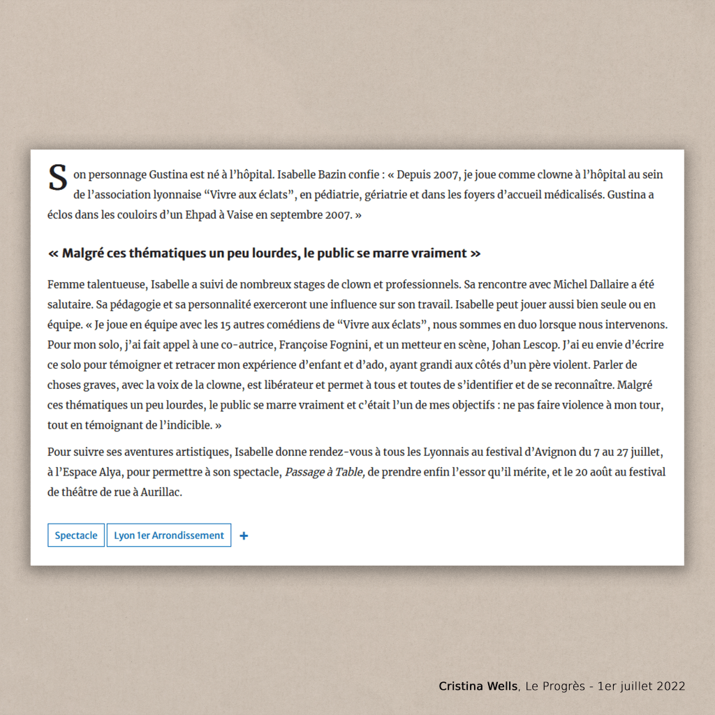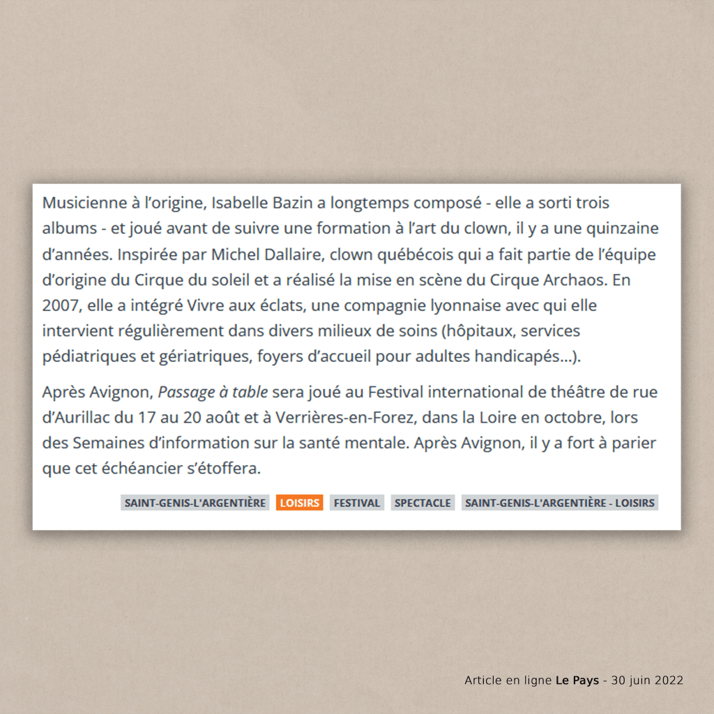 Presse Le Berry Républicain, 05/05/2025 Le Pays, 30/06/2022 Le Progrès, 01/07/2022 Le Montreuillois, 28/04/2022 Partager : Cliquer pour partager sur X(ouvre dans une nouvelle fenêtre) X Cliquez pour partager sur Facebook(ouvre dans une nouvelle fenêtre) Facebook J’aime chargement…